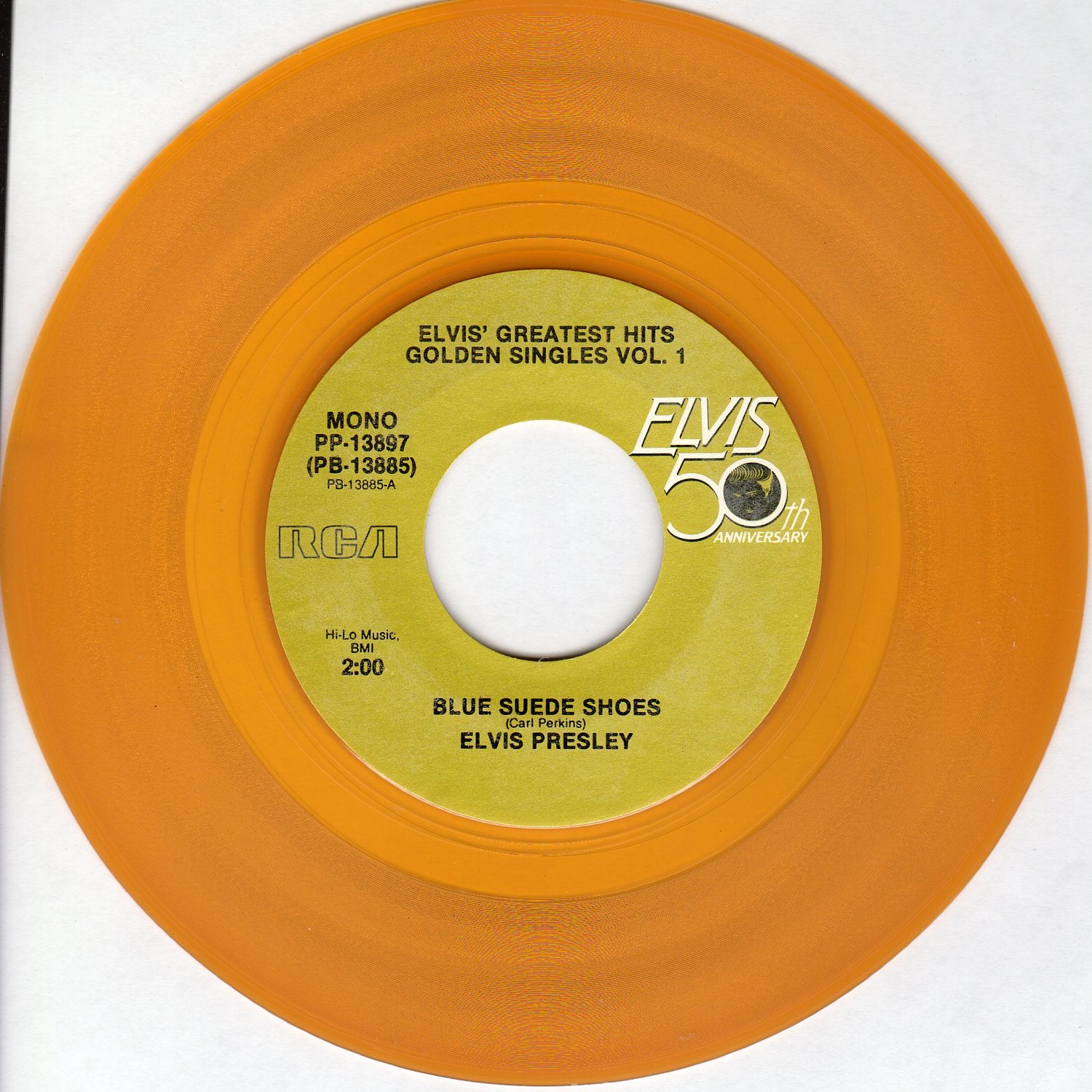 A TREAT FOR ELVIS FANS. VOLUME 1 OF A SPECIAL RELEASE TO MARK WHAT WOULD HAVE BEEN ELVIS' 50TH BIRTHDAY. THERE ARE TWO VOLUMES IN THE SET (SEE CAT. NO. VV 1016 FOR VOLUME 2). EACH SET CONTAINS REPRODUCTIONS OF ELVIS' HITS IN PICTURE SLEEVES AND GOLD VINYL DISCS. THIS SET HAS BEEN STORED AWAY SINCE ITS RELEASE IN 1984. THE DISCS HAVE NEVER BEEN PLAYED AND HAVE ONLY BEEN REMOVED FROM THE CARDBOARD PACKAGING TO SCAN THE SLEEVES AND DISCS. ON EBAY THESE SETS ARE BEING OFFERED FOR AMOUNTS STARTING AT $45.00 USD PLUS A FURTHER AMOUNT UPWARDS FROM $40.00 USD FOR POSTAGE FROM THE USA. WE ARE OFFERING EACH SET FOR $55.00 AUD PLUS $12.70 AUD POSTAGE ANYWHERE IN AUSTRALIA WITH TRACKING. INTERNATIONAL POSTAGE IS EXTRA. CARDBOARD PACKAGE HAS VERY MINOR WEAR ON IT. DISCS AND SLEEVES ARE MINT.