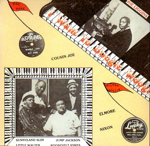 TRACK LISTING: Side 1 - Marvin Phillips and His Men From Mars - Wine Woogie / Charlie "Boogie Woogie" Davis - Old Time Blues / Crack Up / Ray Agee - Wobble Loo / Joe Liggins and His Honeydrippers - Roll 'Em / Cousin Joe with Dickie Well's Blue Seven - Come On Down / Don't Pay Me No Mind. Side 2 - Milton Willis - Little Joe's Boogie / Little M' Midnight - Got A Brand New Baby / Al King and His Kingsmen - Joy Ride / Roosevelt Sykes - Walkin' This Boogie / Jimmy Bell's Trio - I Want To Boogie Woogie / Buster Bennett Trio - I Want To Boogie Woogie / Elmore Nixon - I'm Movin' Out.