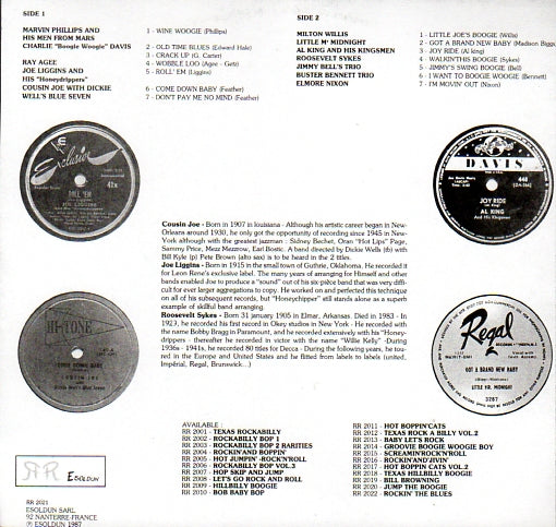 THIS SELECTION WAS RELEASED IN 1987 BY THE FRENCH REISSUE LABEL ESOLDUN AND FEATURES 14 TRACKS OF SUPERB BLUES AND BOOGIE WOOGIE MUSIC.