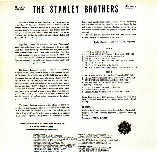 Cat. No. VV 1437: THE STANLEY BROTHERS ~ THEIR ORIGINAL RECORDINGS. MELODEON MLP 7322.