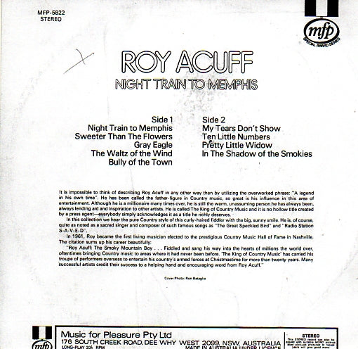 Cat. No. VV 1448: ROY ACUFF - NIGHT TRAIN TO MEMPHIS. MUSIC FOR PLEASURE -5822.MFP