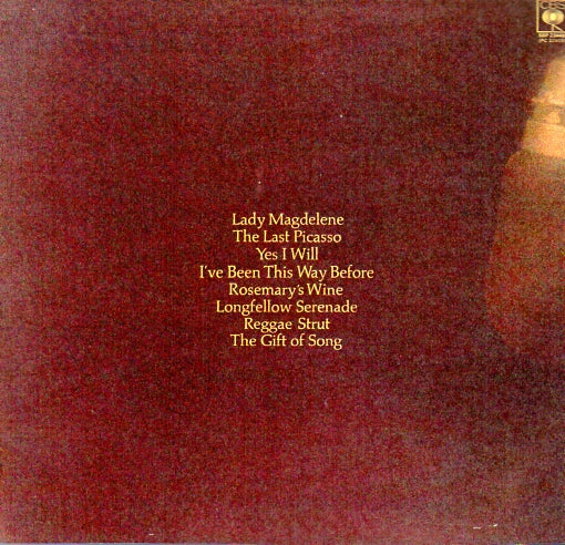 TRACK LISTING: Side 1 - I've Been This Way Before / Rosemary's Wine / Lady Magdelene / The Last Picasso. Side 2 - Longfellow Serenade / Yes I Will / Reggae Strut / The Gift Of Song.