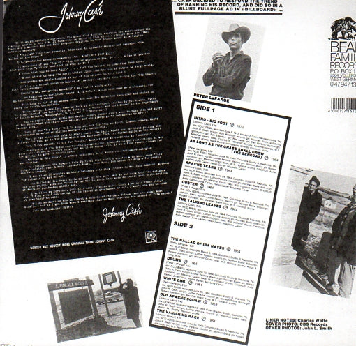 THE ALBUM FOCUSES ON ON THE HISTORY OF OF NATIVE AMERICANS IN THE UNITED STATES AND THEIR PROBLEMS. JOHNNY CASH ASSUMED THAT HIS ANCESTRY INCLUDED CHEROKEE, WHICH PARTLY INSPIRED IS WORK ON THIS RECORDING. THE SONGS IN THIS ALBUM ADDRESS THE HARSH AND UNFAIR TREATMENT OF THE INDIGENOUS PEOPLES OF NORTH AMERICA BY EUROPEANS IN THE UNITED STATES. TWO TRACKS DEAL WITH 20TH CENTURY ISSUES AFFECTING THE SENECA AND PIMA PEOPLES.